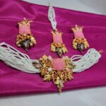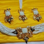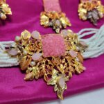 Be the first to review “Elegant choker set in Crush beads with floral cut along crystal beads band. Available in Pink rose and White Golden colors.” Cancel reply
